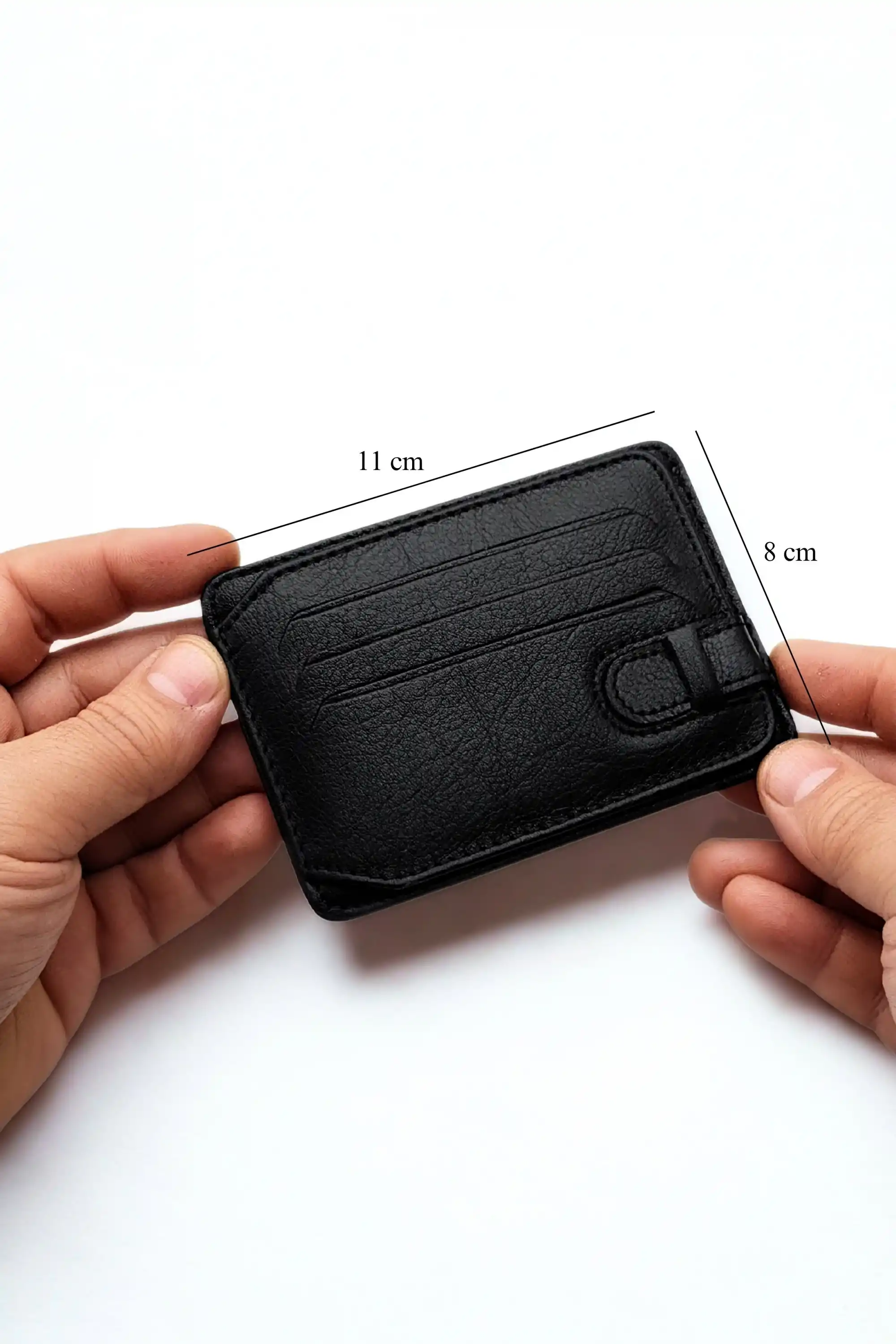 Unisex Kartlık Vegan Deri Minimal Model 6 Kart - 1 Kâğıt Para Bölmeli Siyah