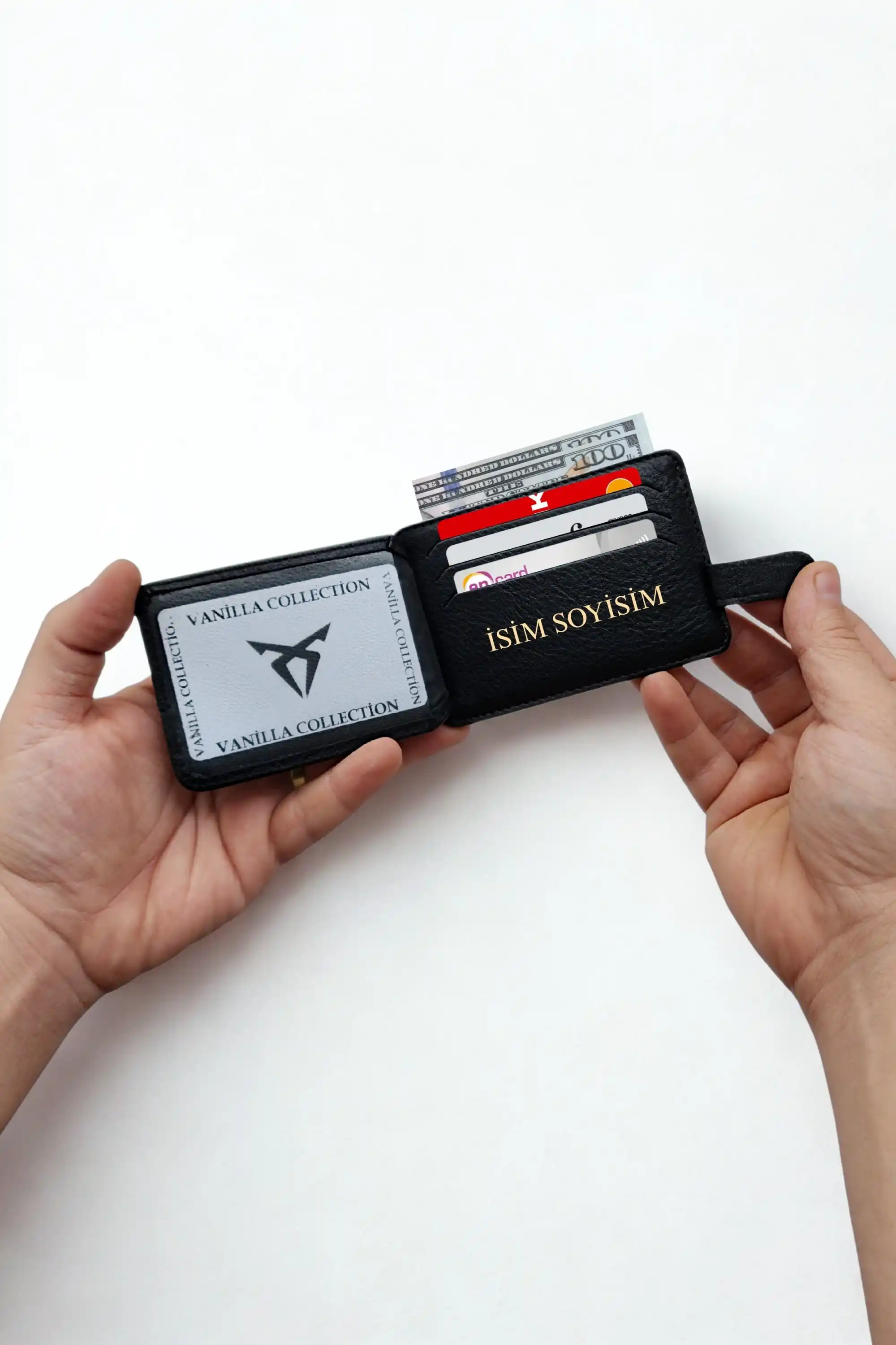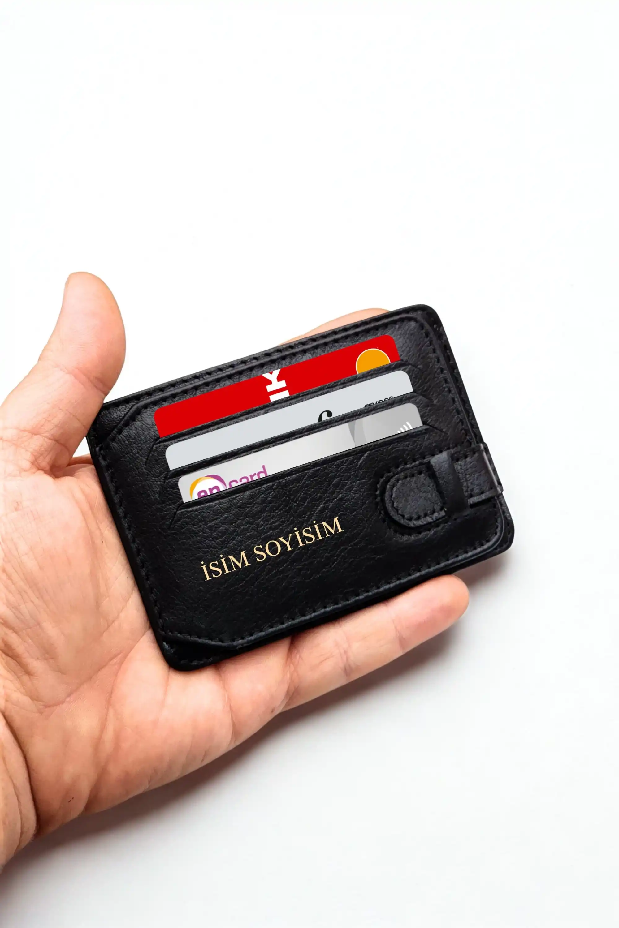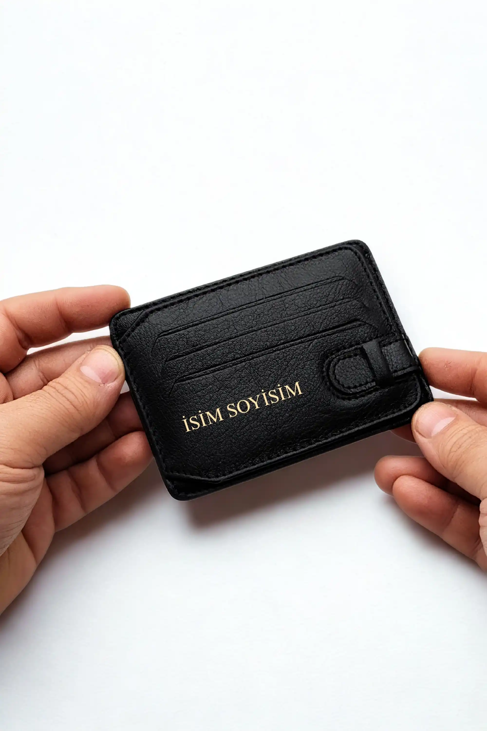 Cüzdan & Kartlık İsim Baskılı Unisex Model Mini Ve Ince Deri Dizme Floter Siyah Portföy