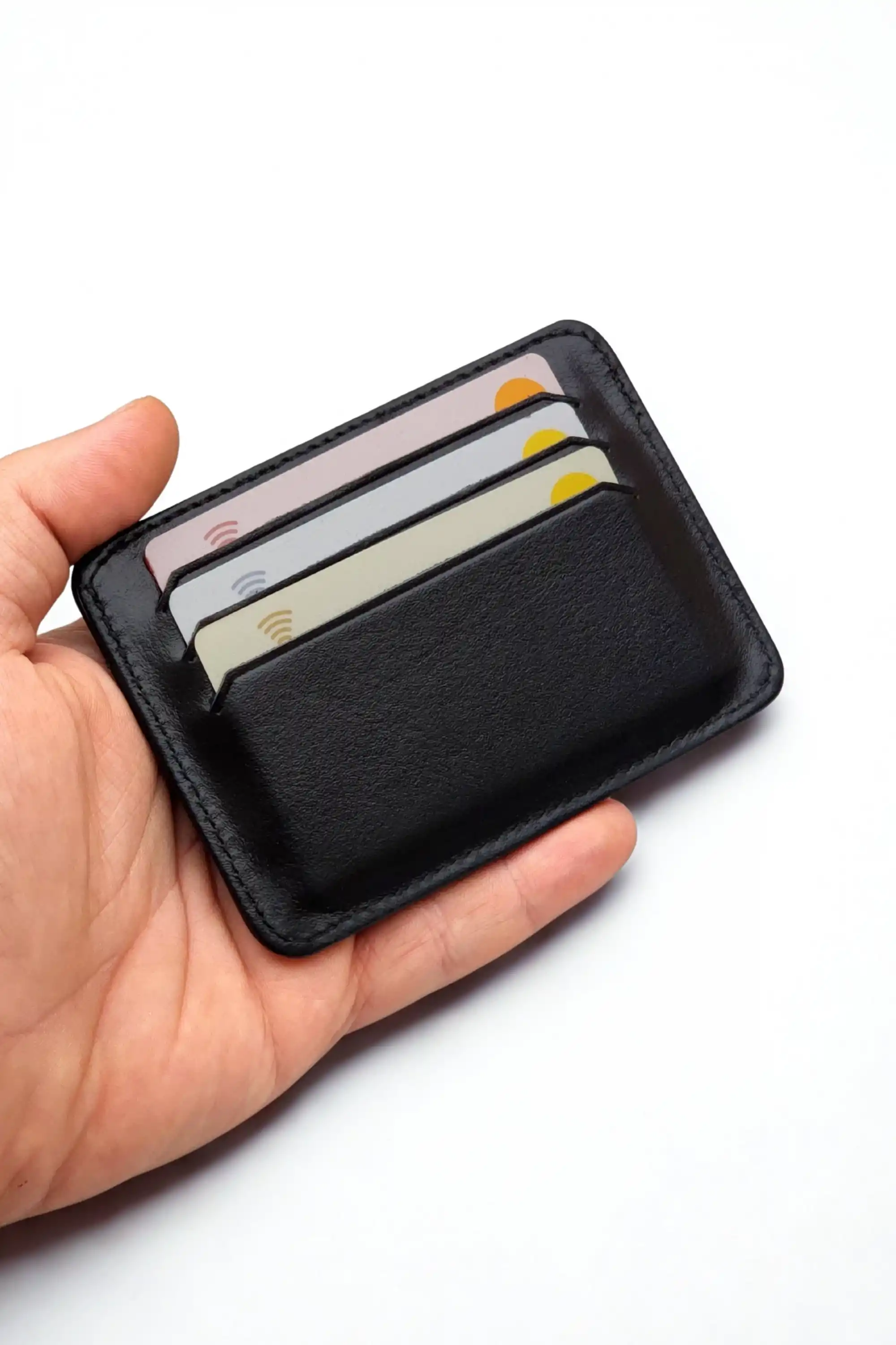 % 100 Hakiki Deri Klasik Ultra Ince Unisex Siyah Kartlık