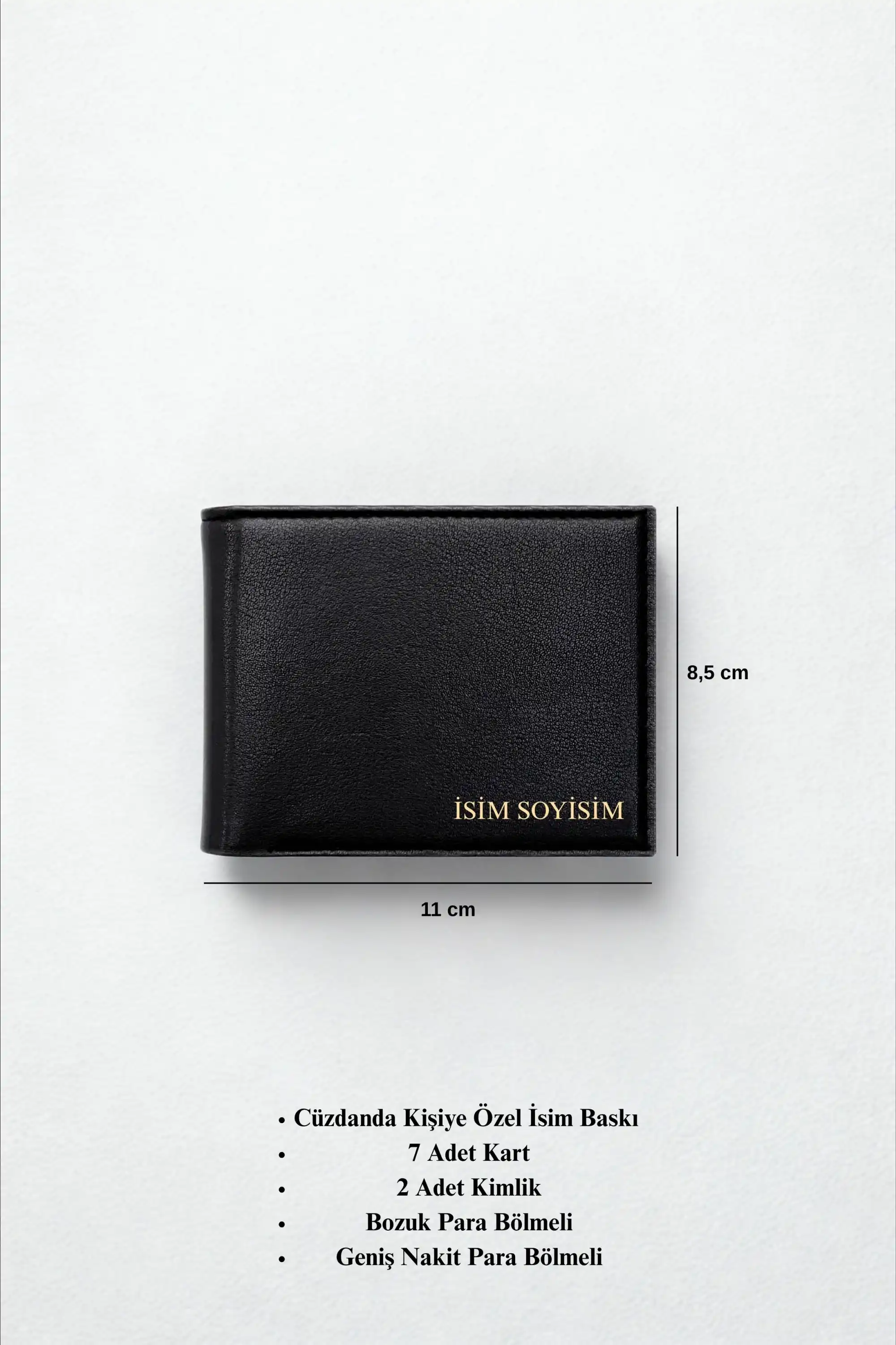 Cüzdan & Kartlık İsim Baskılı Unisex Model Mini Ve Ince Deri Dizme Floter Siyah Portföy
