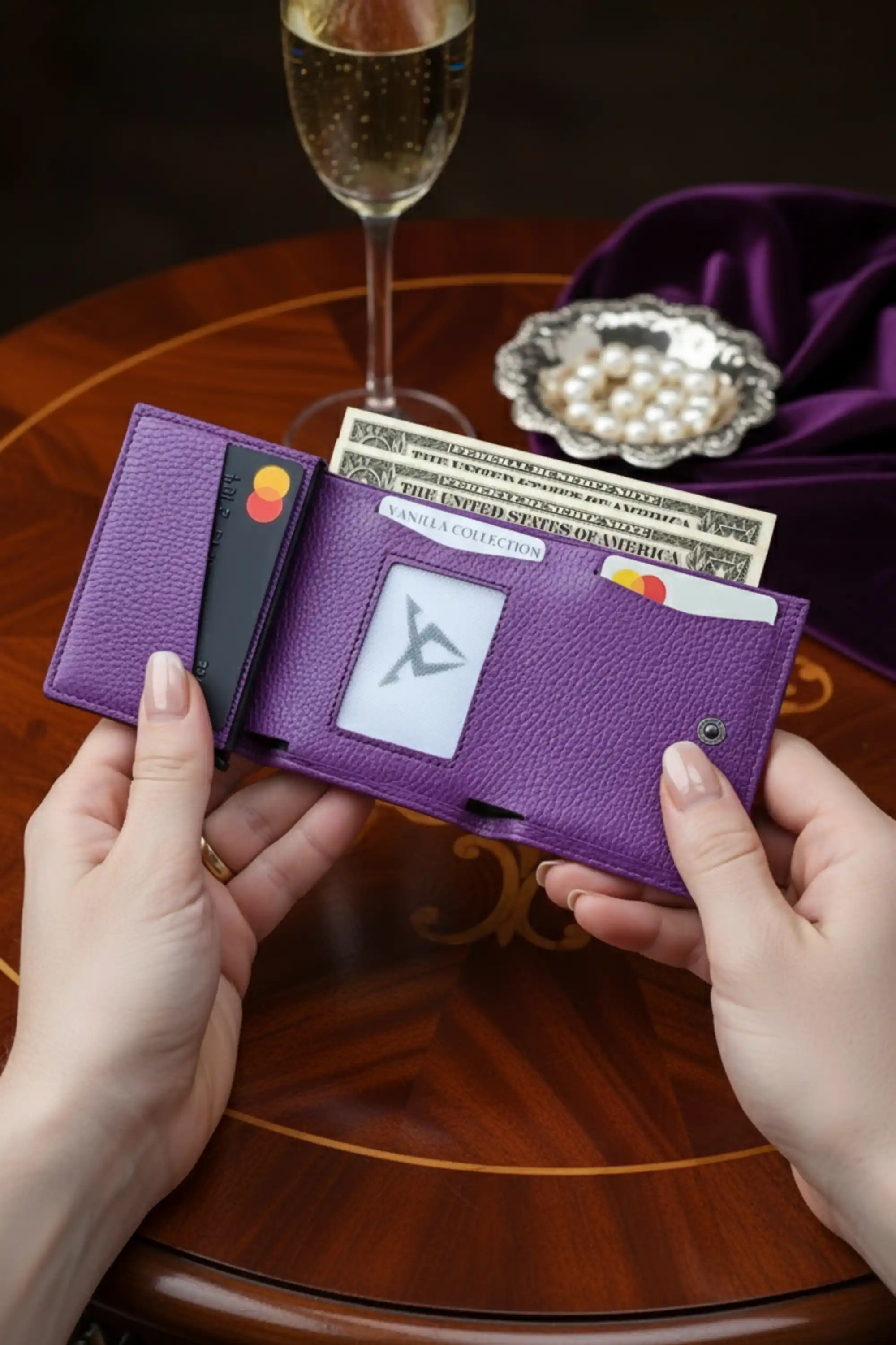 Bu cüzdan, hem şıklığı hem de işlevselliği ile öne çıkar. El işçiliği ile üretilmiş olması, her bir cüzdanın benzersiz ve kaliteli olmasını sağlar. Vegan deri malzemesi sayesinde çevre dostudur ve uzun ömürlü kullanım sunar. 9adet kart bölmesi ve 5 adet kart kapasiteli otomatik kasa ile tüm ihtiyaçlarınızı karşılar. RFID özelliği sayesinde temassız kart hırsızlığını engeller ve güvenli kullanım sağlar.