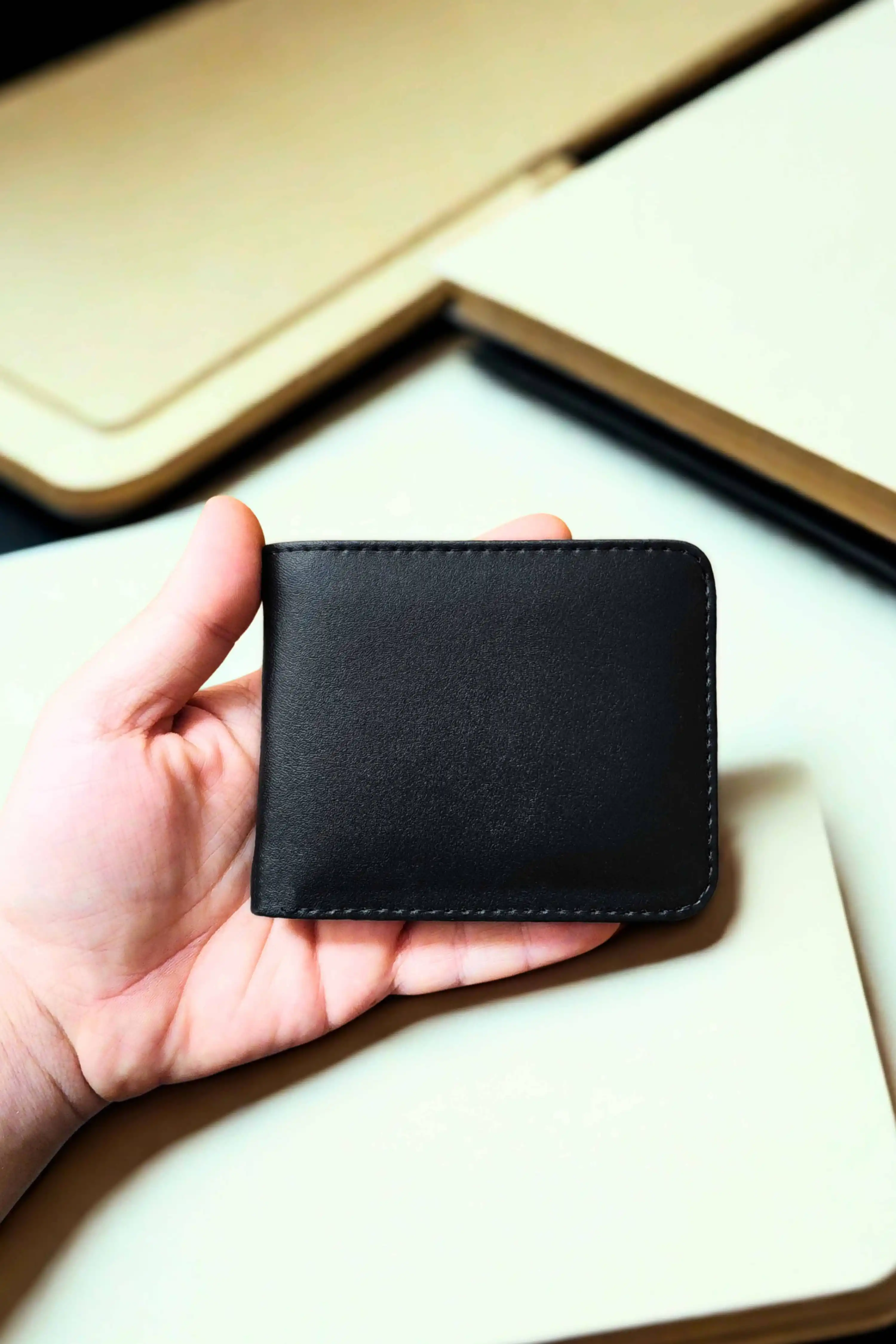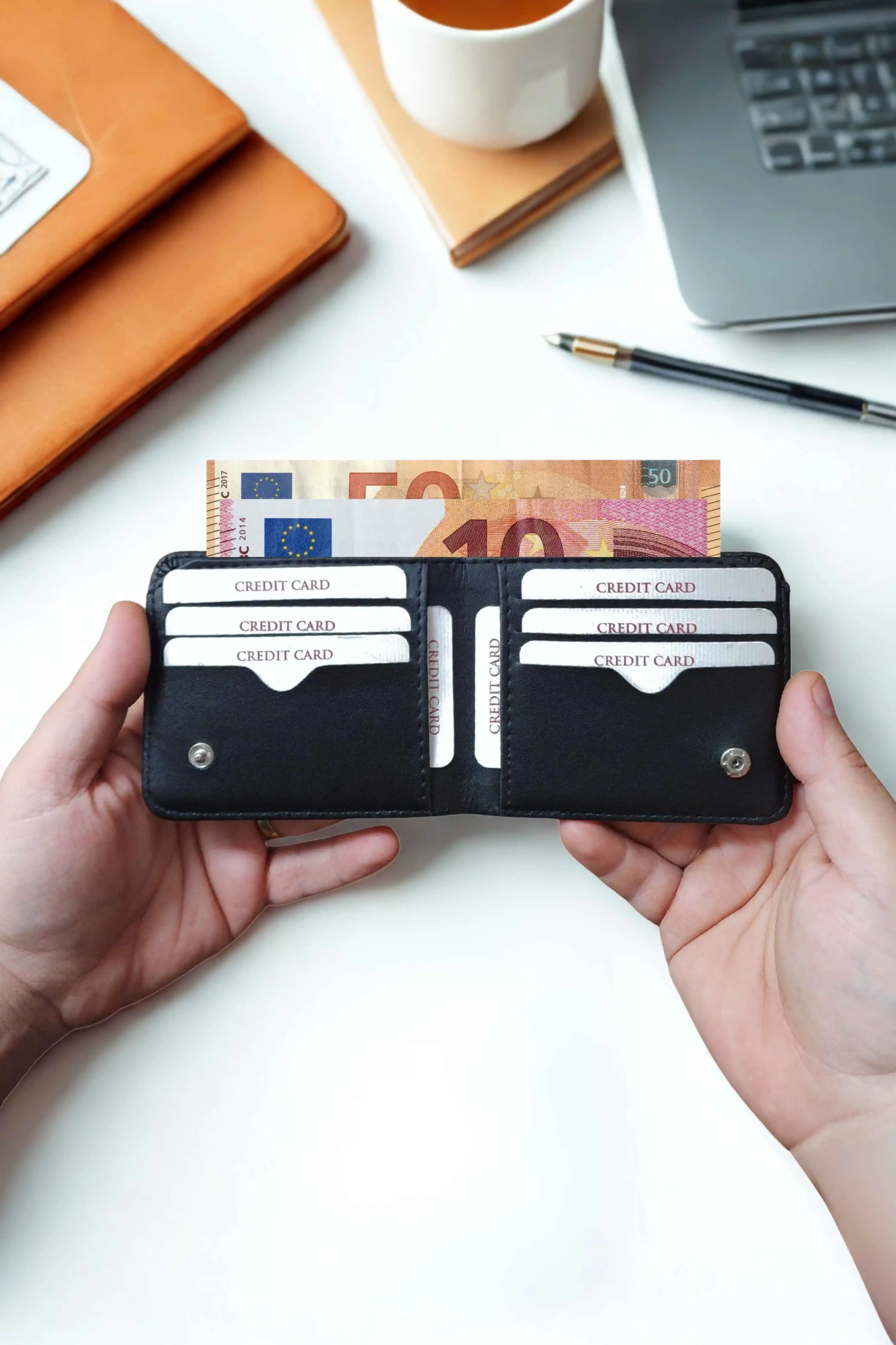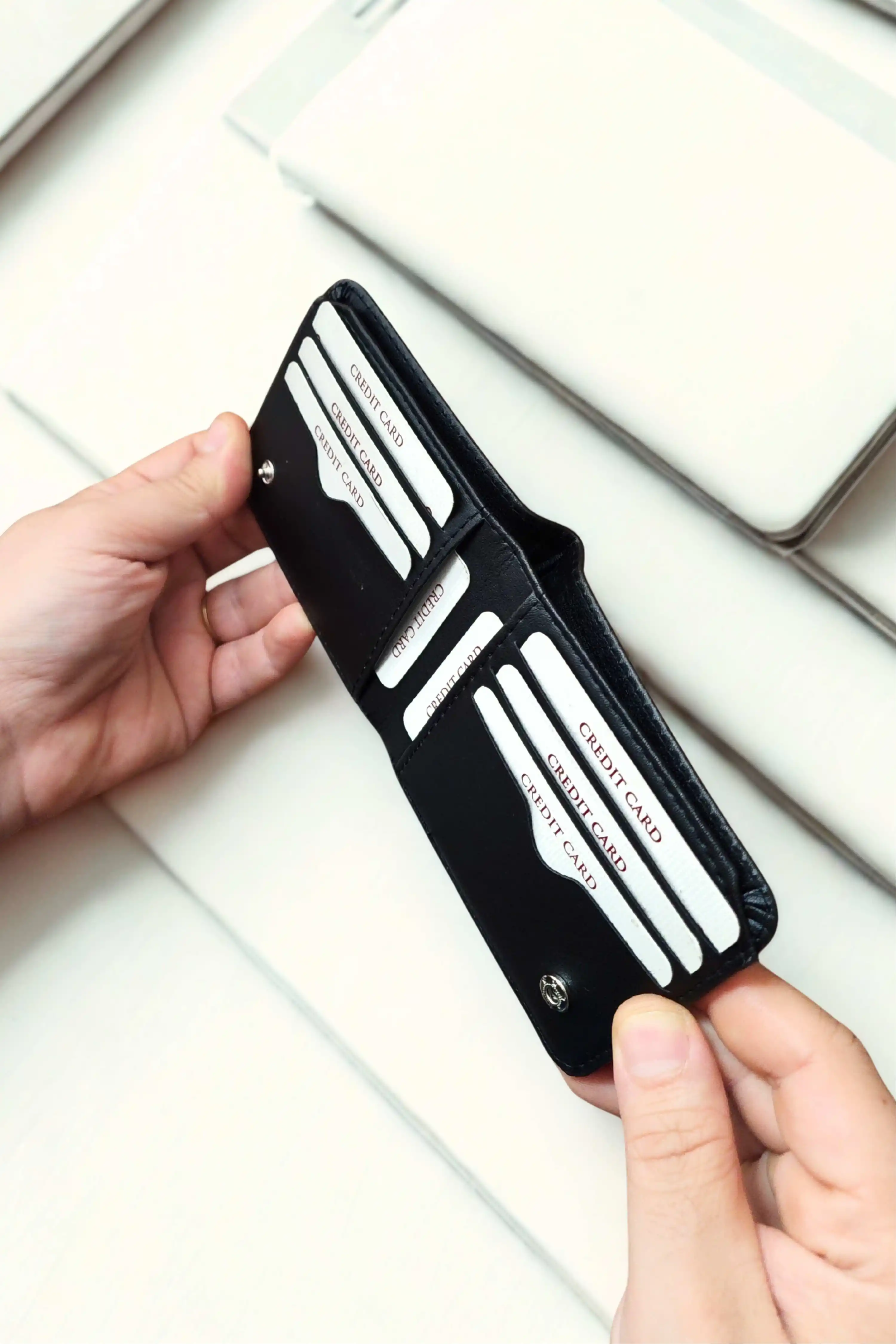 Unisex Siyah Deri Cüzdan İsim Baskılı Kişiye Özel Çift Para Bölmeli 8 Kart Kapasiteli Kutulu