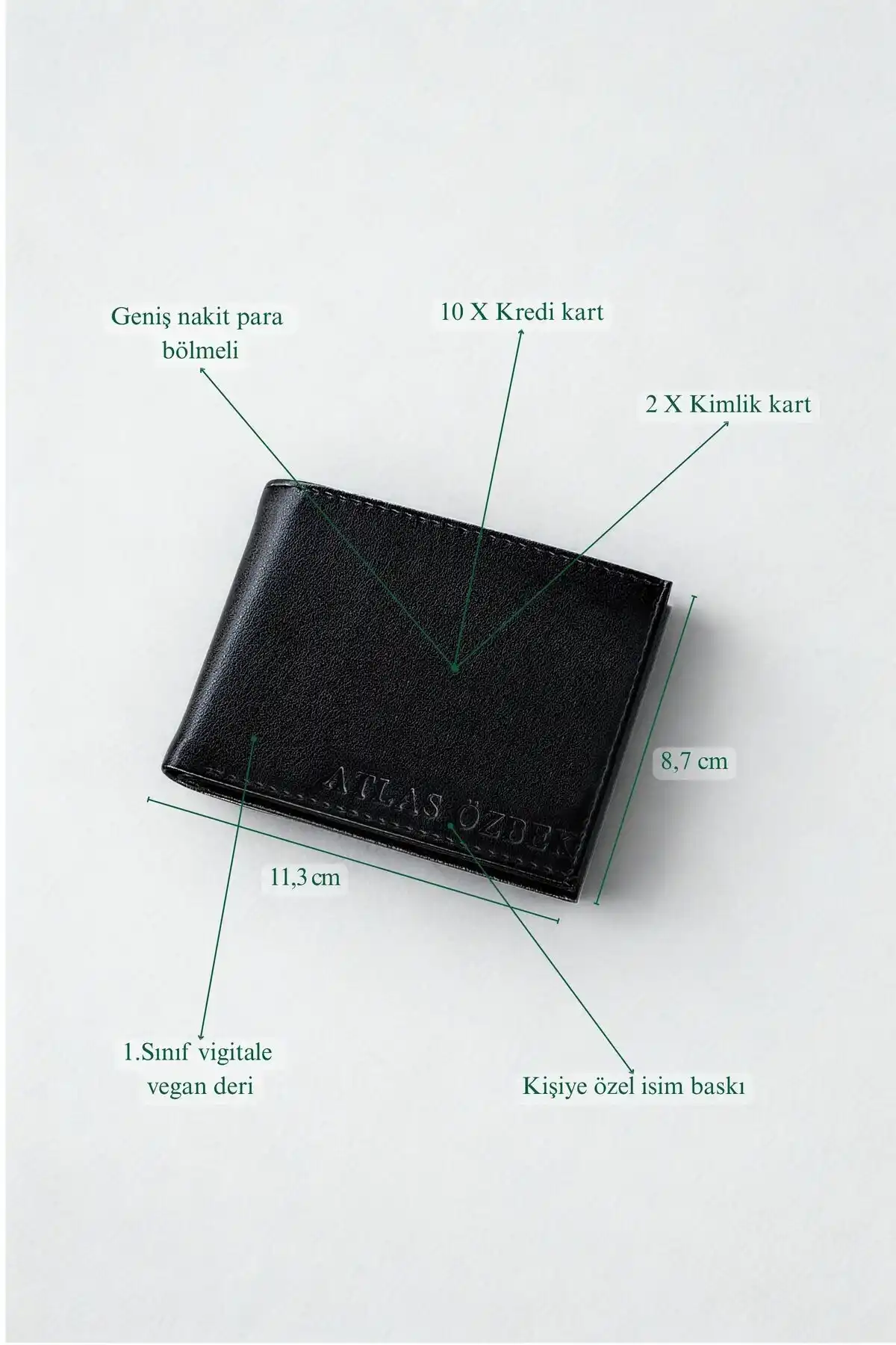 1. Sınıf Vegital Vegan Deri İsme Özel Erkek Cüzdanı - 10 Kartlık ve Geniş Bölmeli Lüks Tasarım